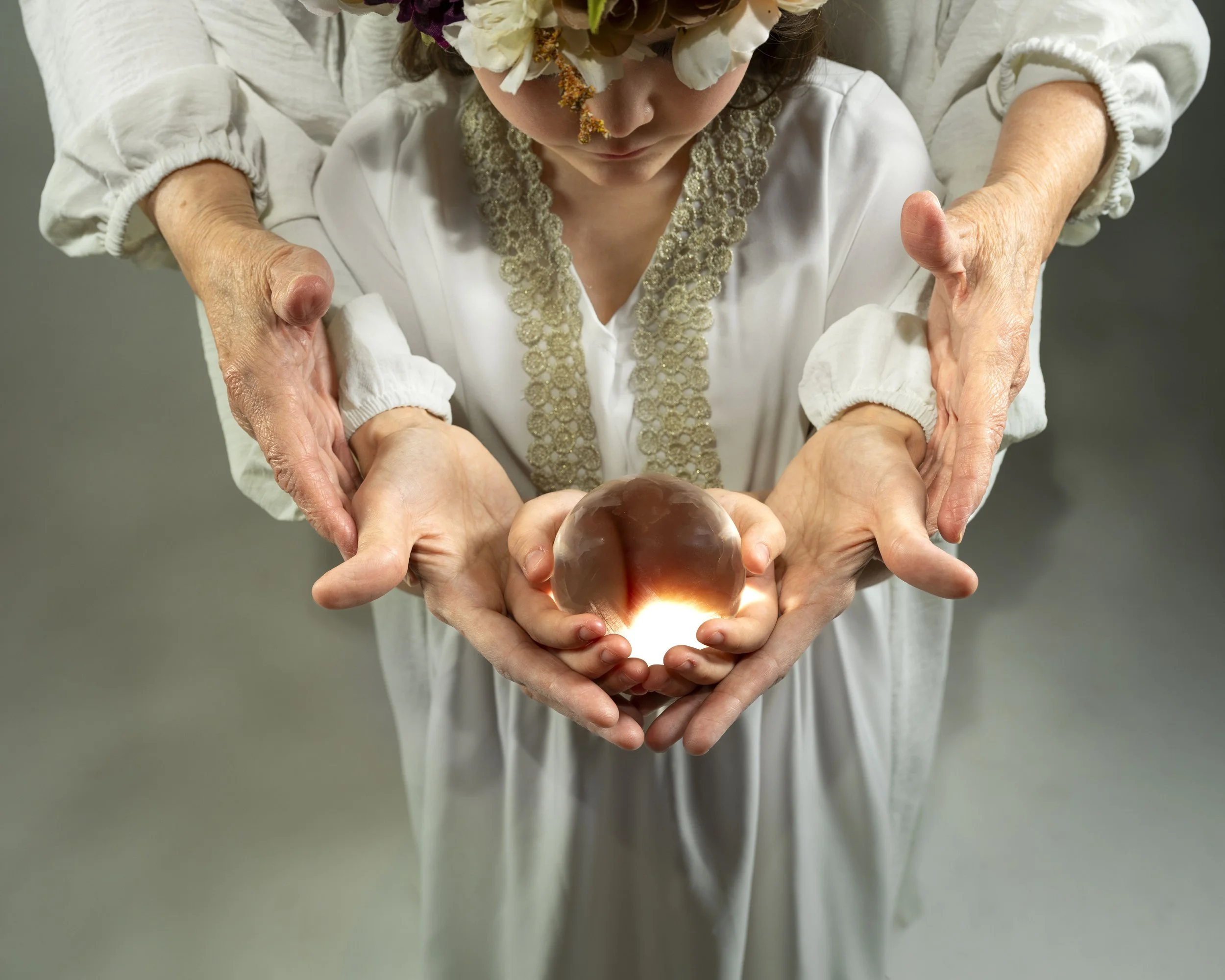 The space between the divine feminine and the wild instinctual feminine. Blending Greek mythological elements of Hecate, Persephone, and the fates; goddesses who inhabit the underworld and by extension the shadow of the human psyche, cyclical patterns of nature, and concepts of fate and destiny.