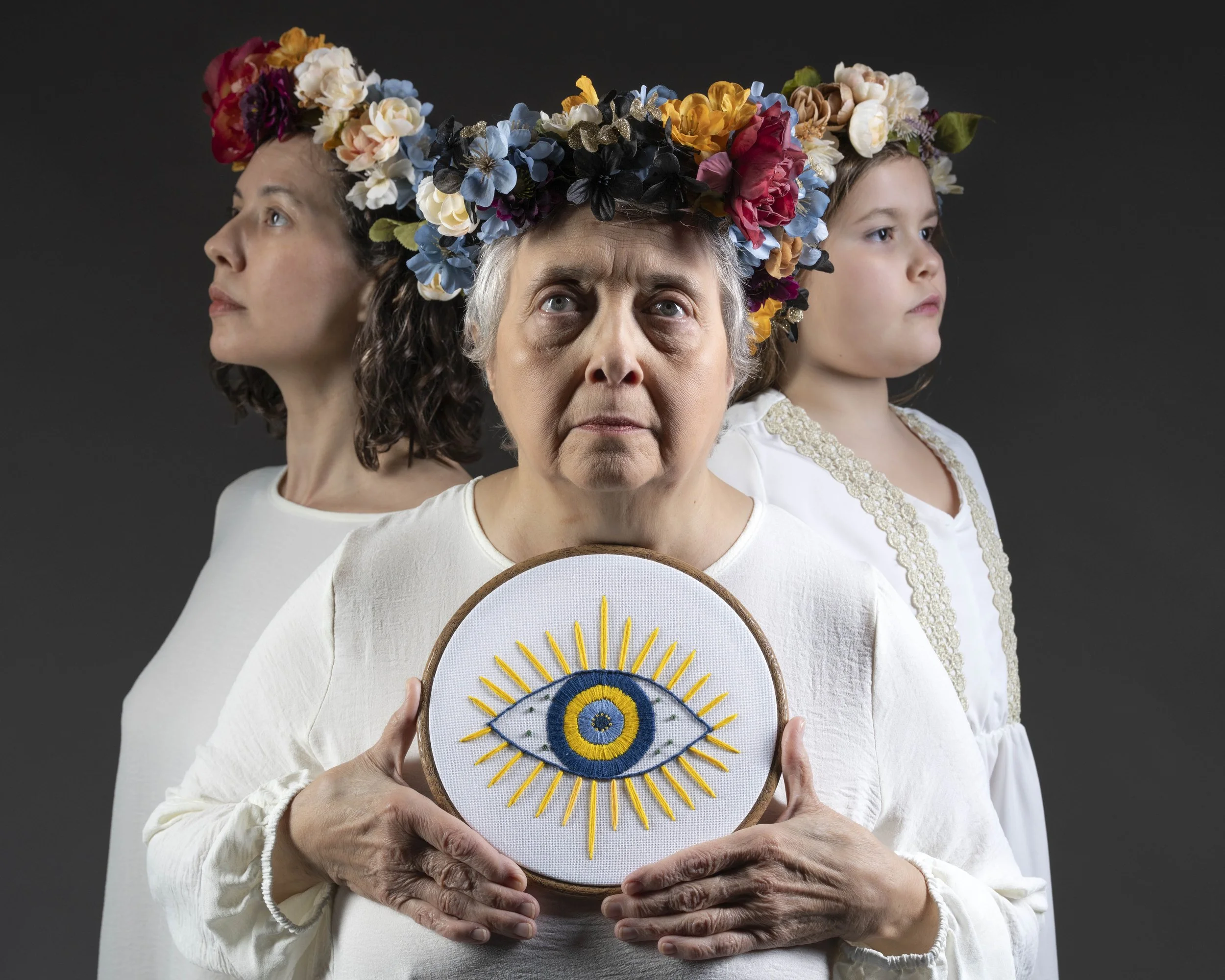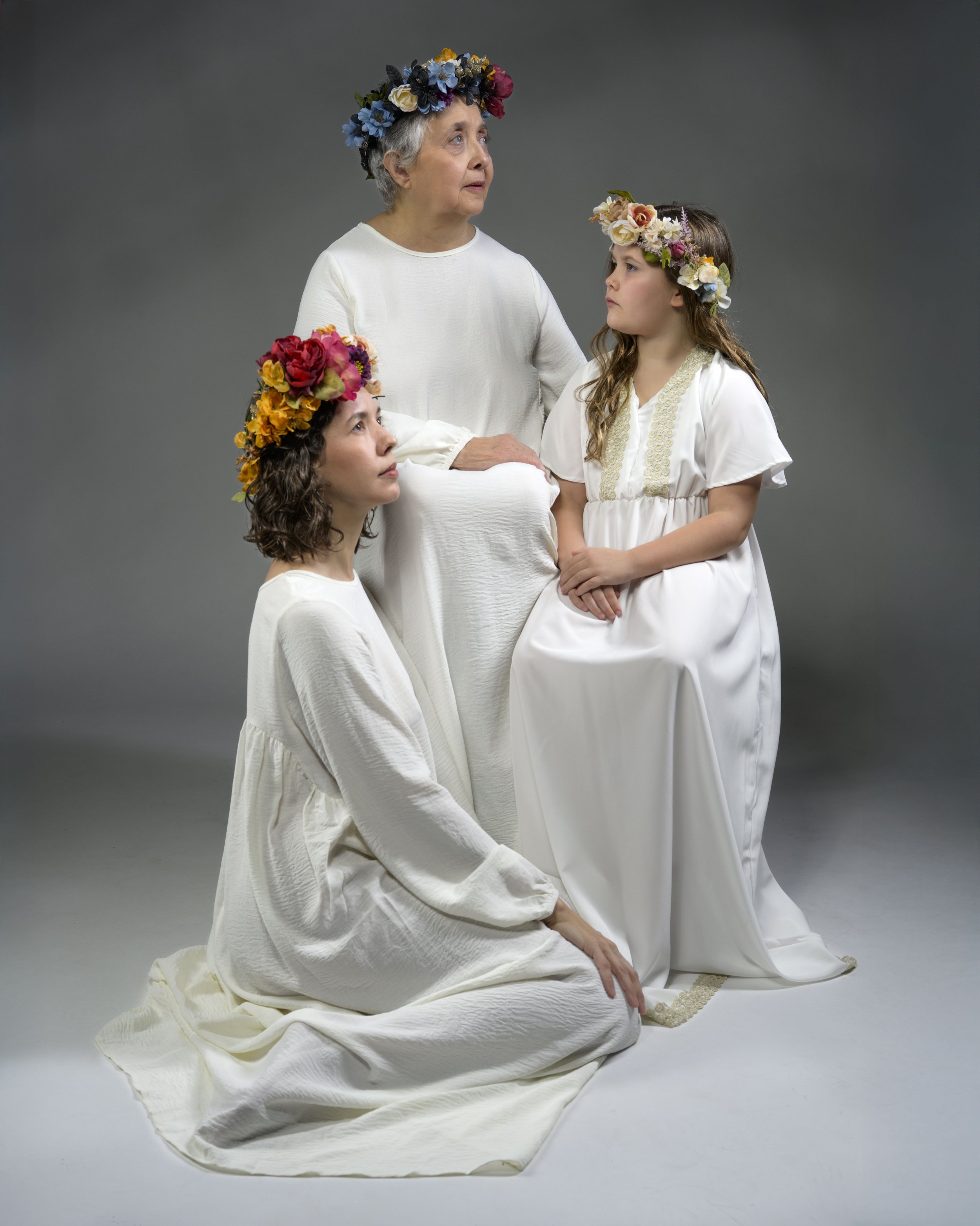 Grandmother, mother, and daughter are linked through genetics and patterns of trauma and resilience, impacting how each walks through the world. Threads of support and love are woven through the generations, as are anger, disappointment, and varying freedom of self expression: patterns which evolve with each generation.